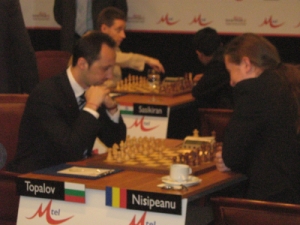 Гросмайстор Веселин Топалов загуби първата си партия от тазгодишното издание на супертурнира МТел Мастърс. Българина се предаде пред напористият румънец Нисипеану на 47-мият ход. Шахриар Мамедяров потвърди очакванията за силна спортна форма и победи в Славянска защита миналогодишния хит Гата Камски. Партията бе много динамична, като почти след всеки ход азера става да се раздвижва из залата, хвърляйки любопитни погледи към информационните екрани. Междудругото фактът, че там е по-интересно за гледане потвърди и американеца, който вместо таблото на масата, гледаше екрана. Въпреки жертвата на кон за отпушване на неиграещите си фигури черните не успяха да се докопат до ремито.