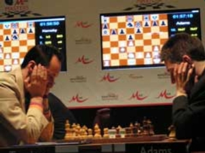 В третата партия от турнира английският гросмайстор Майкъл Адамс и индиецът Кришнан Сасикиран не излъчиха победител и завършиха след изиграни 45 хода в атака Панов на защита Каро Кан.